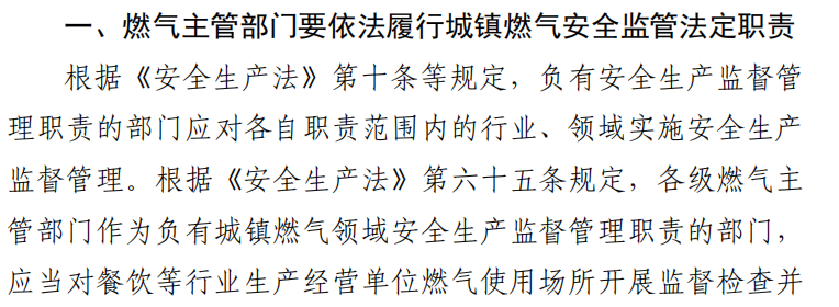 誠(chéng)然,應(yīng)急管理部門(mén)是餐飲業(yè)的安全監(jiān)管部門(mén)之一,主要依據(jù)是《應(yīng)急管理部辦公廳關(guān)于修訂〈冶金有色建材機(jī)械輕工紡織煙草商貿(mào)行業(yè)安全監(jiān)管分類(lèi)標(biāo)準(zhǔn)(試 行) 〉的通知》,餐飲業(yè)被列在了第八類(lèi)商貿(mào)行業(yè)中。但是,文中明確規(guī)定了燃?xì)獗O(jiān)管并不屬于應(yīng)急管理部門(mén)的職責(zé)。