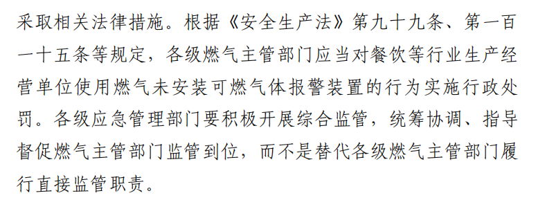 我們?cè)倏?021年10月27日,該省安委辦下發(fā)的“省安全生產(chǎn)委員會(huì)辦公室關(guān)于切實(shí)推動(dòng)餐飲等行業(yè)安裝可燃?xì)怏w報(bào)警裝置工作規(guī)范到位的通知”,截圖如下: